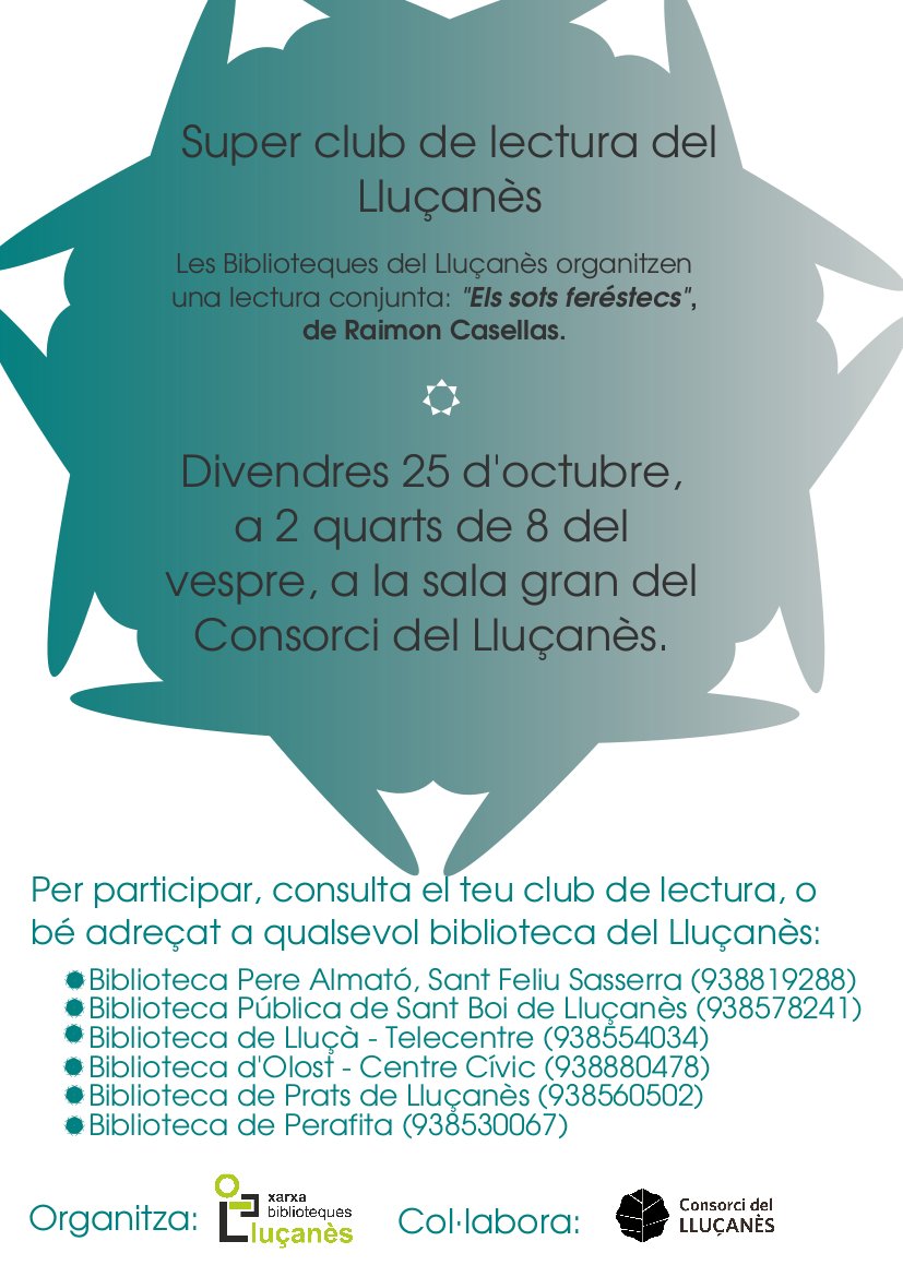 | Programa: | Club de lectura obert a totes les persones del Lluçanès. | ||||||||||||||||